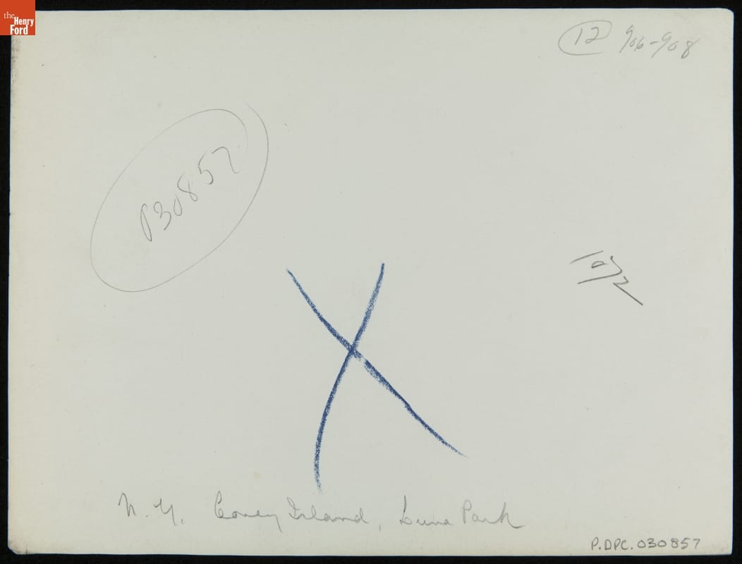 From 1895 to 1924, the Detroit Publishing Company was one of the world's major image publishers. Its wide-ranging stock of original photographs included scenes from around the globe. Coney Island had been a popular seaside getaway for New Yorkers since the 1850s. About 1900, it became home to three of America's first true amusement parks: Steeplechase Park, Luna Park, and Dreamland.