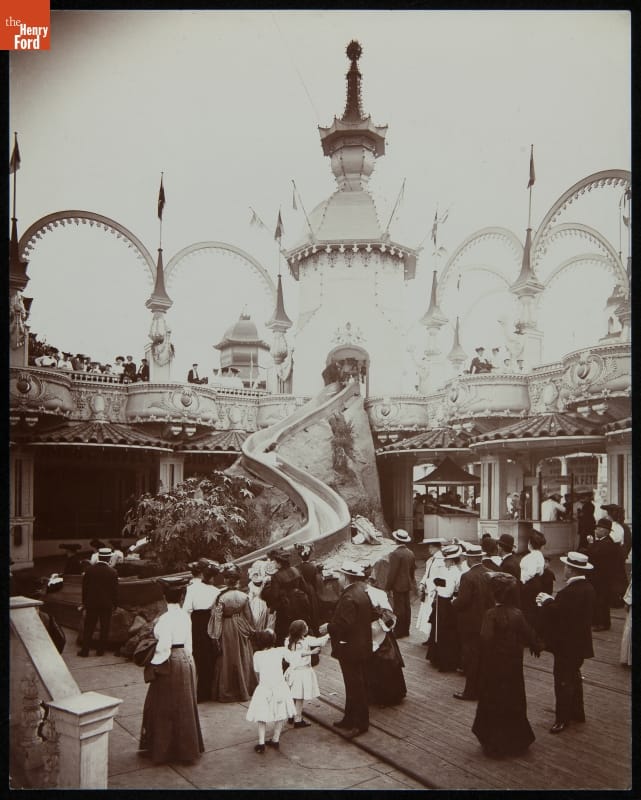 From 1895 to 1924, the Detroit Publishing Company was one of the world's major image publishers. Its wide-ranging stock of original photographs included scenes from around the globe. Coney Island had been a popular seaside getaway for New Yorkers since the 1850s. About 1900, it became home to three of America's first true amusement parks: Steeplechase Park, Luna Park, and Dreamland.