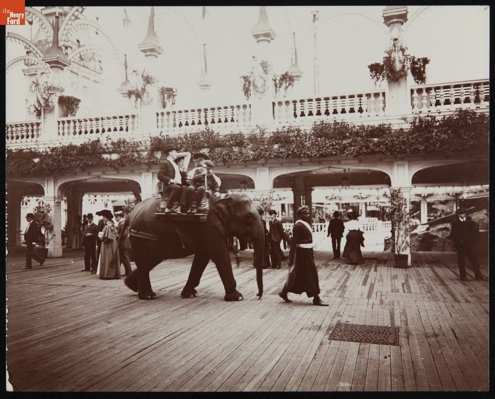 From 1895 to 1924, the Detroit Publishing Company was one of the world's major image publishers. Its wide-ranging stock of original photographs included scenes from around the globe. Coney Island had been a popular seaside getaway for New Yorkers since the 1850s. About 1900, it became home to three of America's first true amusement parks: Steeplechase Park, Luna Park, and Dreamland.