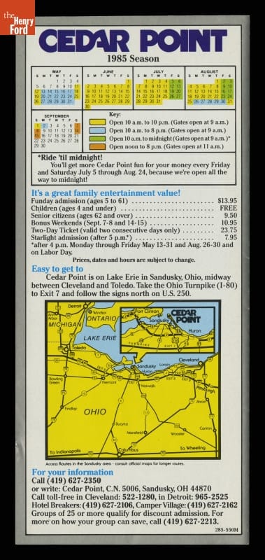 Cedar Point, Sandusky, Ohio, 1985 Season Brochure