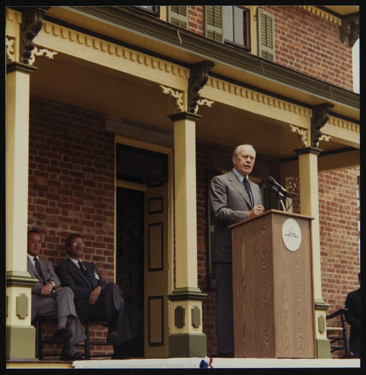 Gerald Ford Speaking at the Firestone Farmhouse Dedication Ceremony, June 29, 1985
