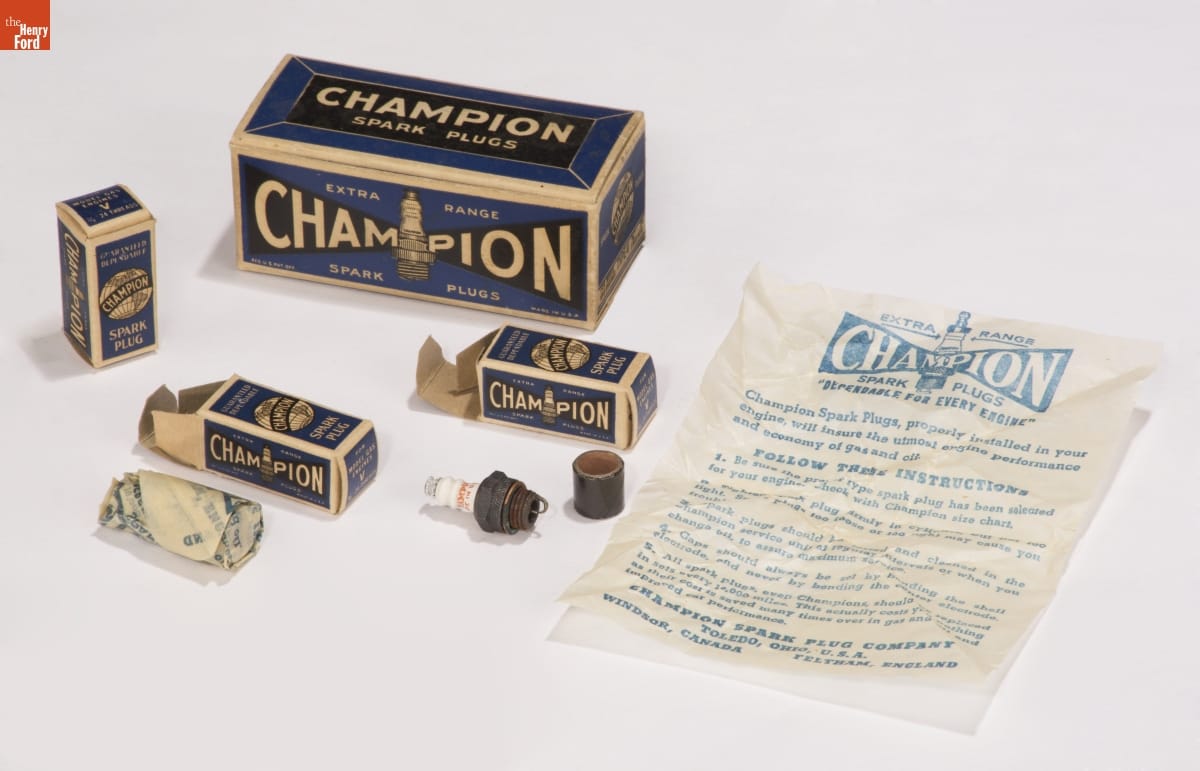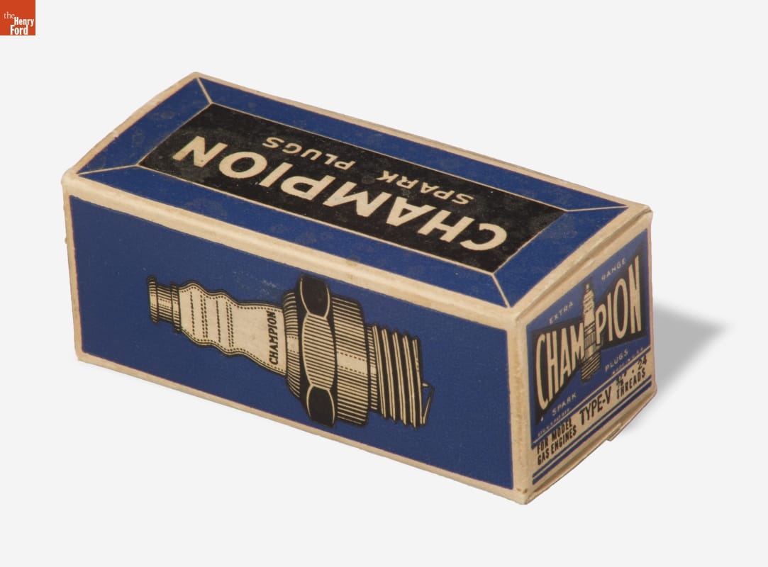 Box of Ten Champion Spark Plugs, Type V, 1935-1955