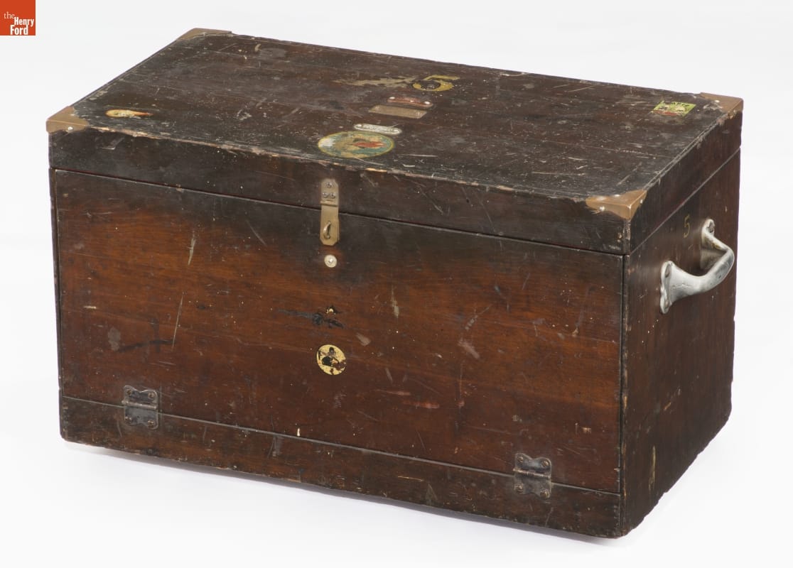Tether cars, gas-powered model race cars, were popular in the 1930s and 1940s. They were raced individually while tethered to a central pivot, or against each other on a scaled-down board track. Racers needed tools and spare parts with them at competitions. This box, used by Ray Hook, kept everything organized -- and included a place for the car as well.