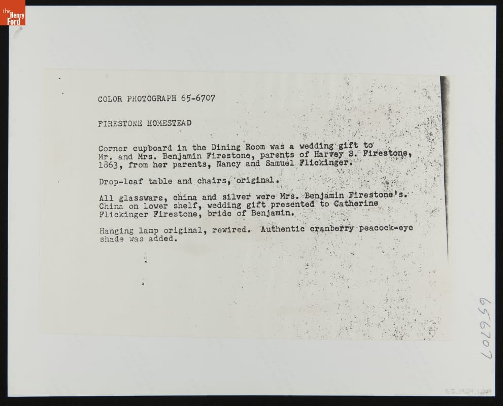 Dining Room in Firestone Farm at its Original Site, Columbiana County, Ohio, 1965
