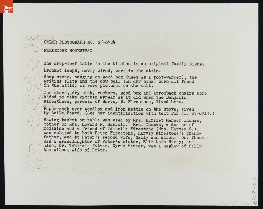 Kitchen in Firestone Farm at its Original Site, Columbiana County, Ohio, 1965