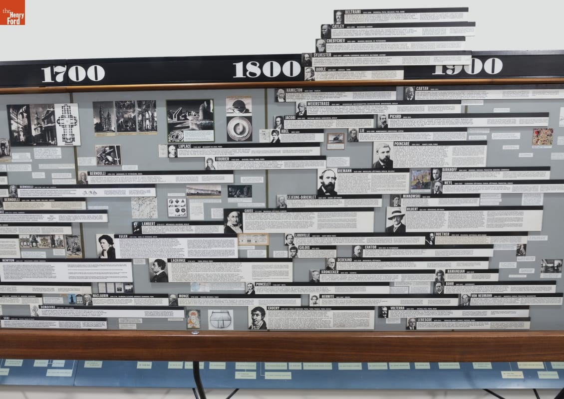Mathematica was the first exhibition to be designed by the Eames Office, sponsored by IBM. One of the first immersive exhibits dedicated to mathematics, its mechanical and static displays teach people about the abstract qualities of mathematics in a non-mathematical way--through direct interaction and visual storytelling. This timeline presents a partial lineage of mathematicians, theories, and cultural connections.