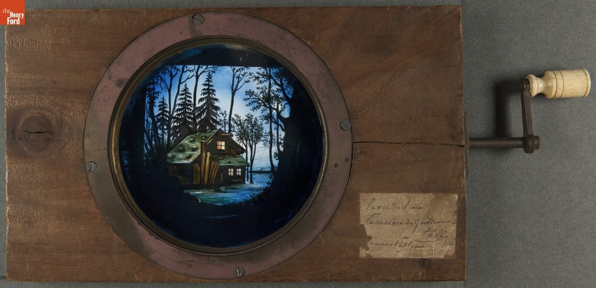 Mechanical Lantern Slide, "Moonrise, The House of William Tell," 1860-1900