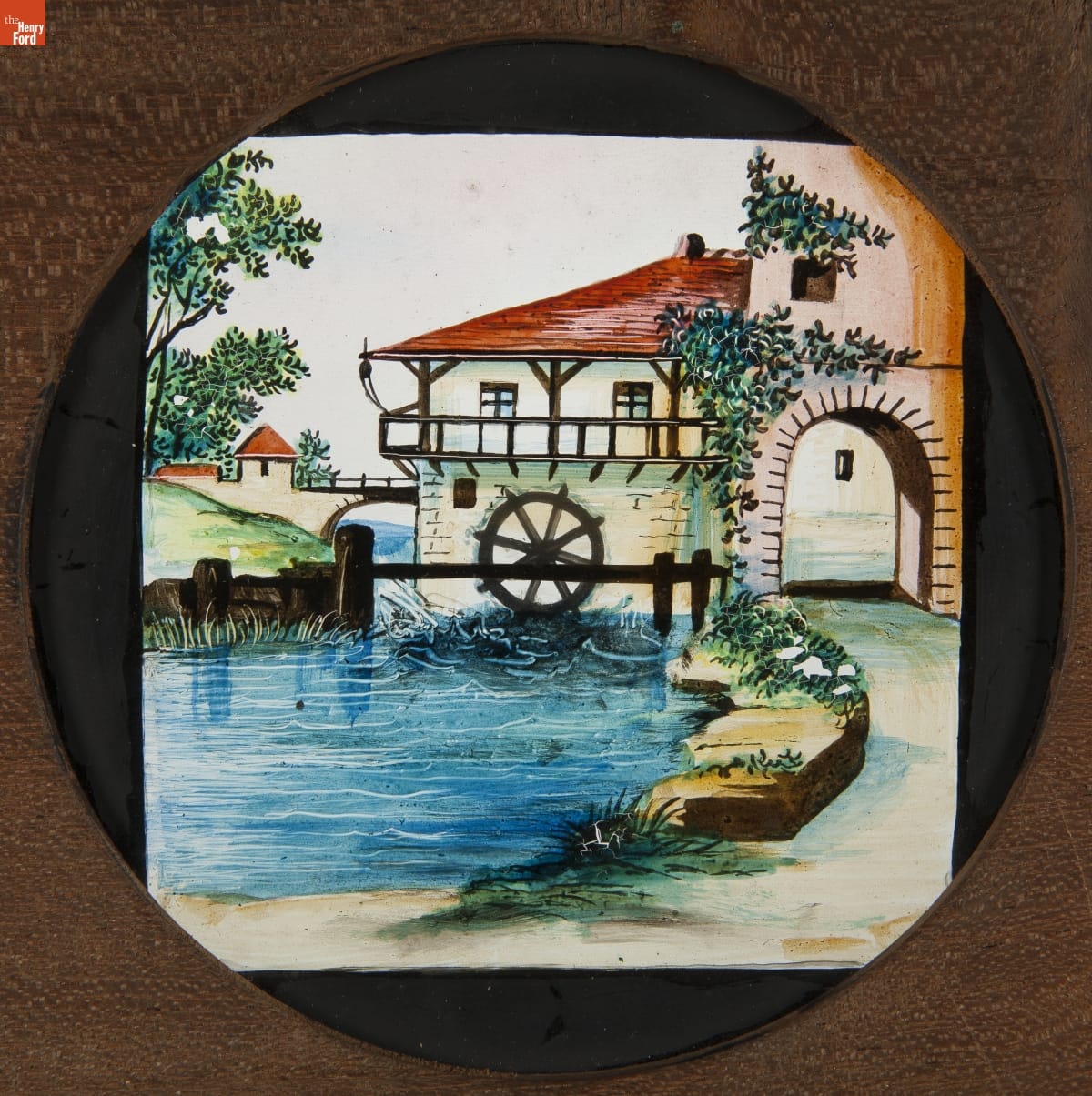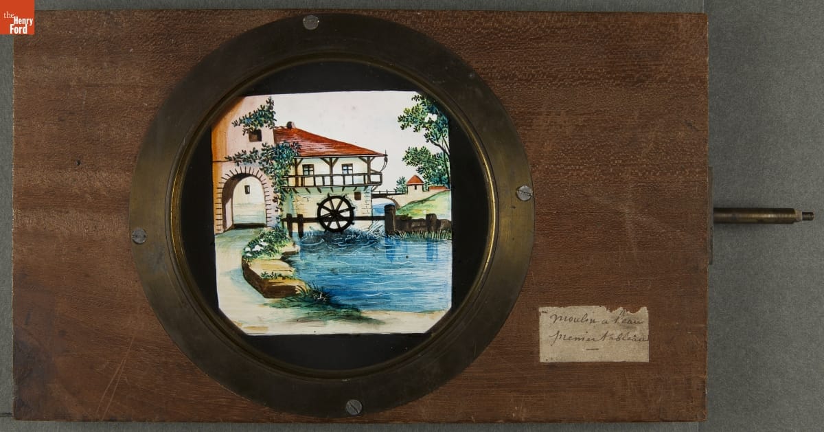 Mechanical Lantern Slide, "The Water Wheel," 1860-1900