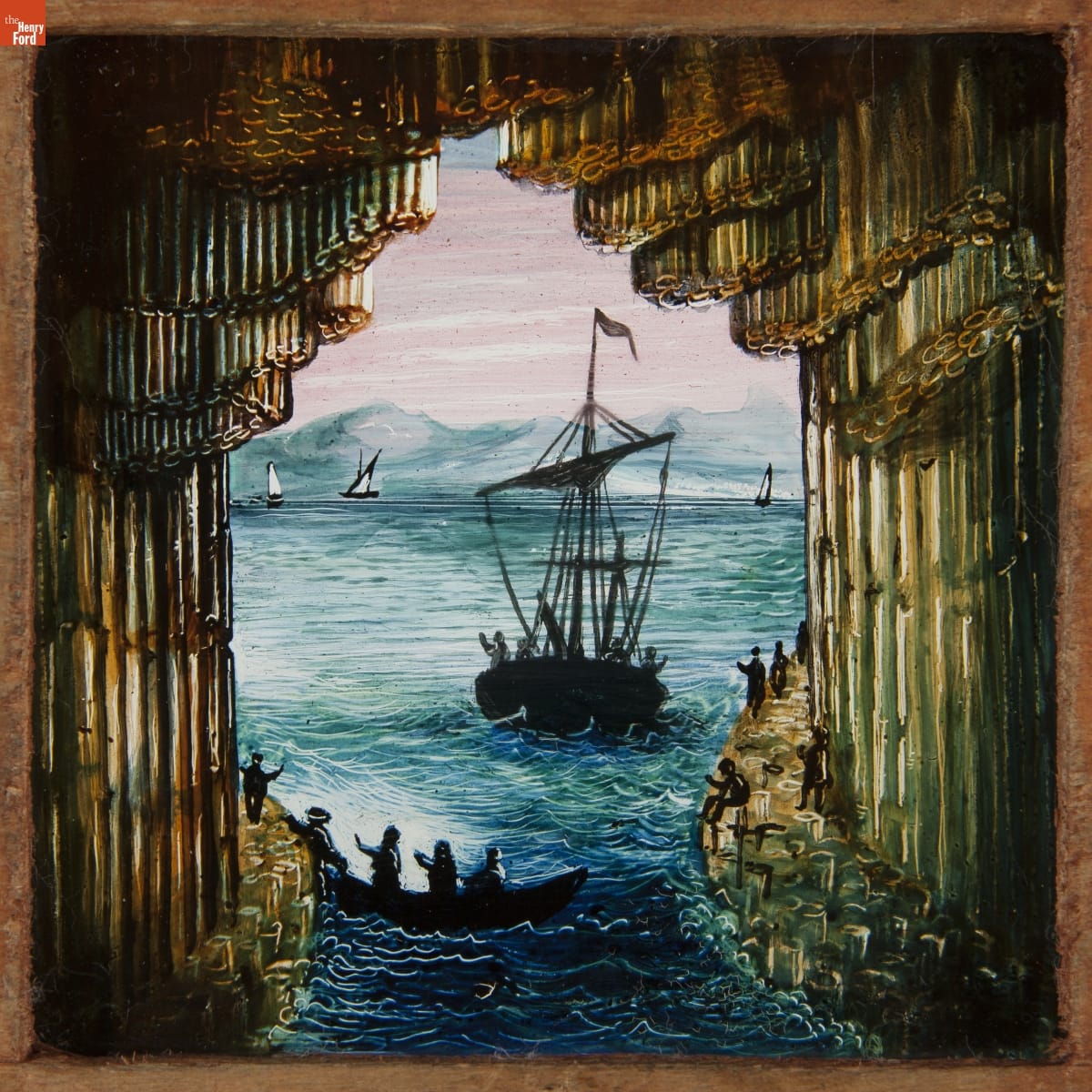 Mechanical Lantern Slide, "Fingal's Cave in the West of Scotland," 1860-1900