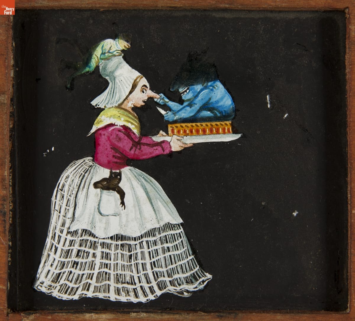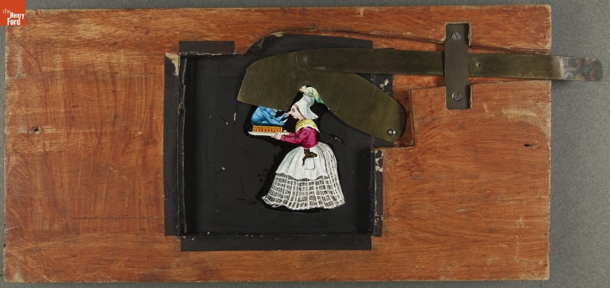 Mechanical Lantern Slide, Woman and the Pastry, 1860-1900