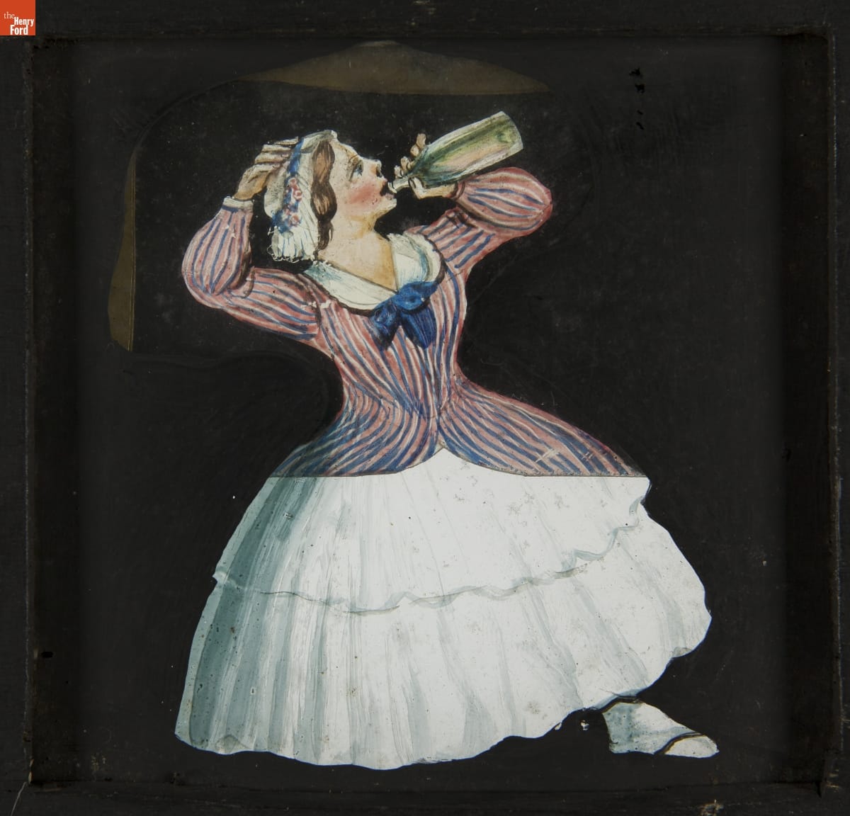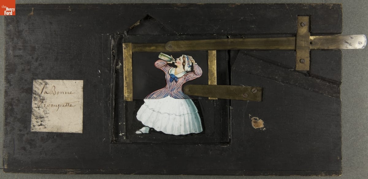 Mechanical Lantern Slide, Woman Drinking from Bottle, 1860-1900