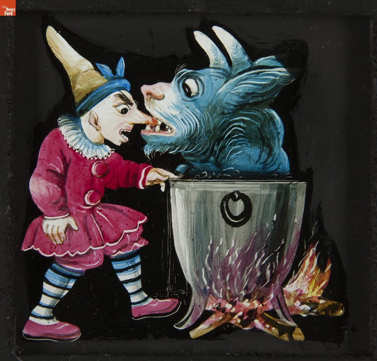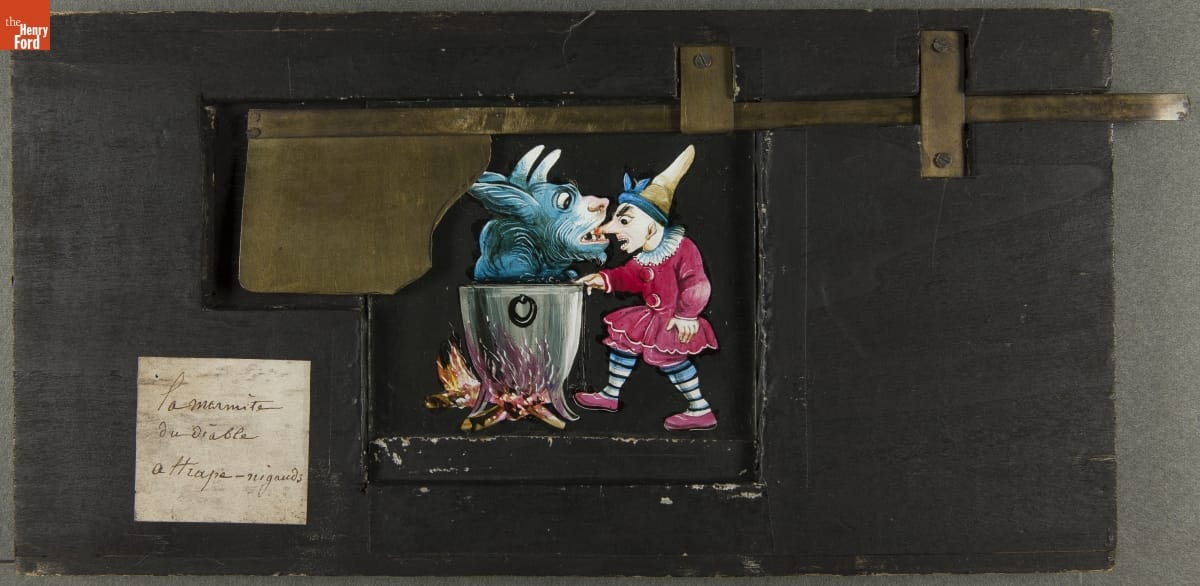 Mechanical Lantern Slide, "The Devil's Pot Catches Simpletons," 1860-1900
