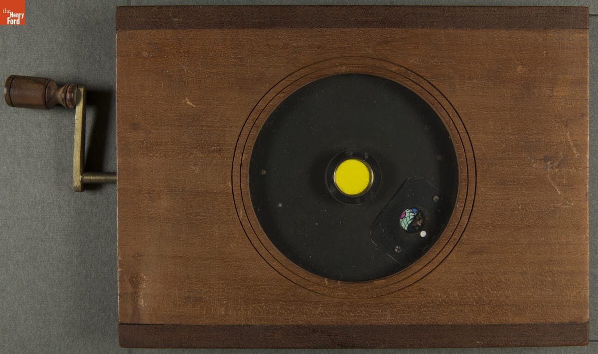 Mechanical Lantern Slide, Orbit of the Earth and its Moon, 1860-1900