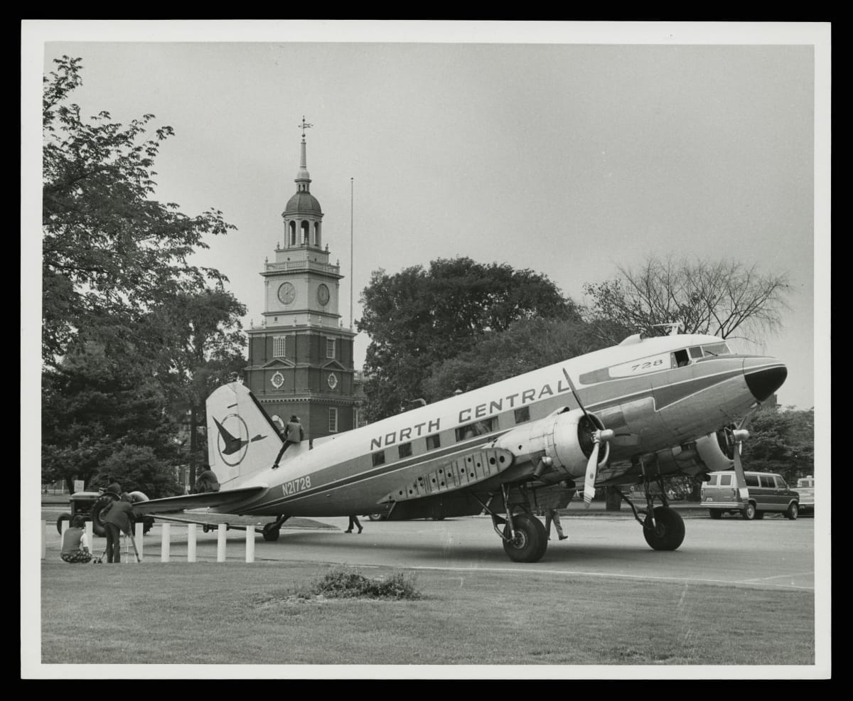 North Central Airlines donated a Douglas DC-3 airplane to The Henry Ford in 1975. After the plane flew to Ford Motor Company's proving ground -- first developed as an airport in 1924 -- its wings were removed and the aircraft was transported by crane to Henry Ford Museum. It was reassembled and displayed outside the museum until moved indoors in 2003.