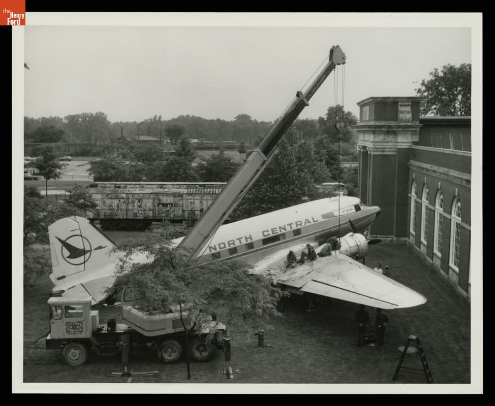 North Central Airlines donated a Douglas DC-3 airplane to The Henry Ford in 1975. After the plane flew to Ford Motor Company's proving ground -- first developed as an airport in 1924 -- its wings were removed and the aircraft was transported by crane to Henry Ford Museum. It was reassembled and displayed outside the museum until moved indoors in 2003.