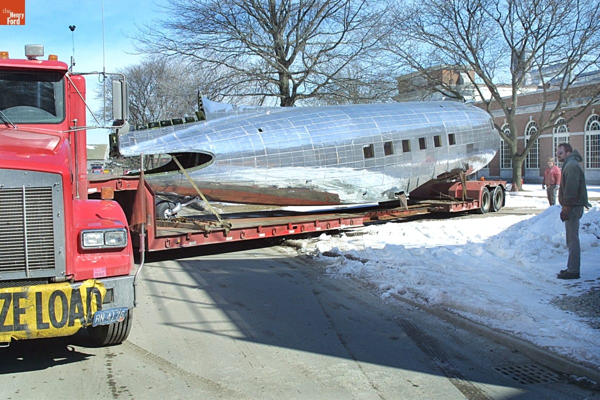 The Henry Ford acquired its Douglas DC-3 airplane in 1975 and, due to its size, the plane was displayed outside Henry Ford Museum for 27 years. The centennial of flight provided an opportunity to move the DC-3 indoors. The plane was conserved in 2002 and then installed in the museum's Heroes of the Sky exhibit in 2003.