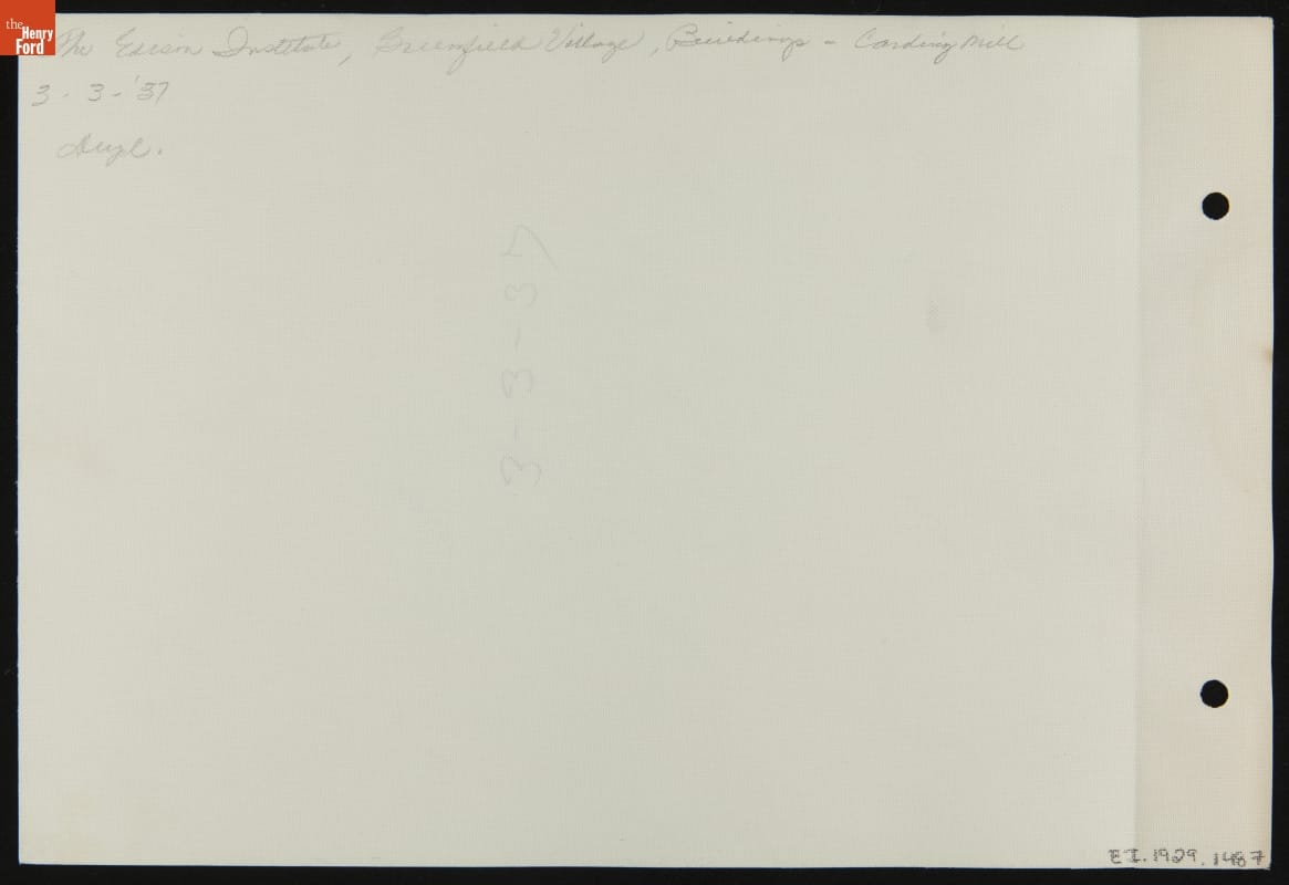 Plymouth (now Gunsolly) Carding Mill in Greenfield Village, Dearborn, Michigan, March 3, 1937