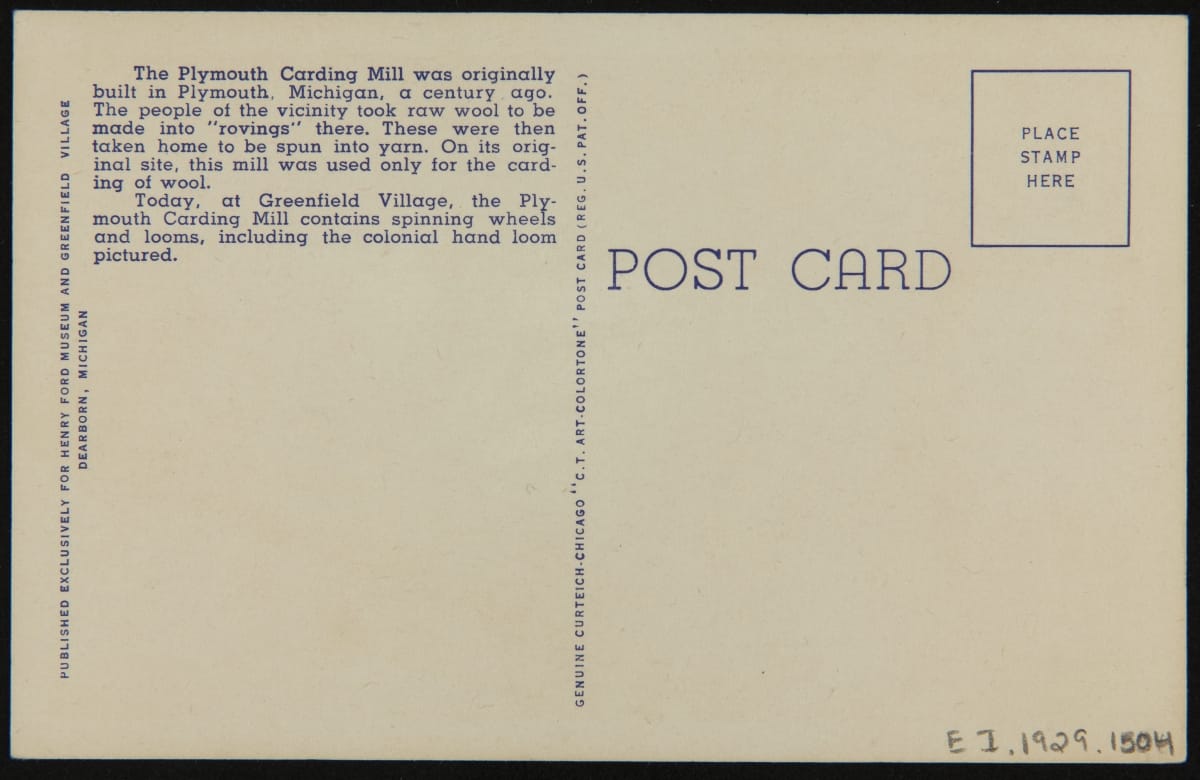 "Carding Mill, Greenfield Village, Dearborn, Michigan," Published 1954