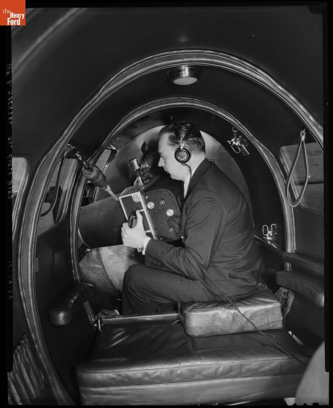 Detroit News--Airplane--Lockheed Orion--Early Bird--Interior View--William A. Kuenzel and Camera--Item1