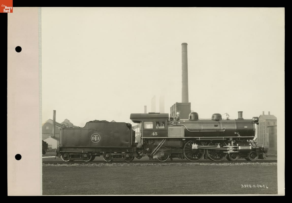 Number 45, a 4-4-2 Atlantic-type steam locomotive, was purchased by the Detroit, Toledo & Ironton Railroad from the Michigan Central Railroad in 1926. Henry Ford, who owned DT&I at the time, had the locomotive rebuilt at Ford Motor Company's Rouge factory. Several of the engine's parts were plated with highly polished nickel, which encouraged DT&I workers to treat number 45 well.