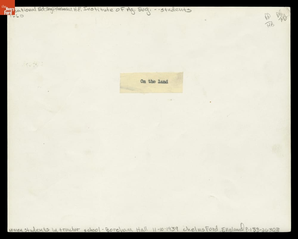 Two Students in a Field with a Tractor at Henry Ford Institute of Agricultural Engineering, England, 1939