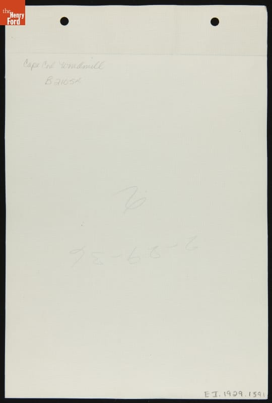 The Ford Dealers of the United States and Canada purchased the Farris windmill in 1935. The Cape Cod structure, built in the mid-1600s and said to be the oldest windmill in the United States, would be a gift to Henry Ford. The windmill was dismantled and reassembled in Ford's Greenfield Village where the structure was placed on an elevated stone foundation.