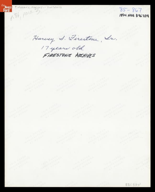 Portrait of Harvey Firestone at Age 17, 1885-1886