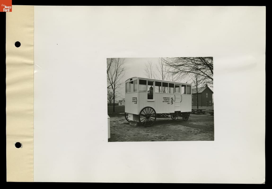 This lunch wagon originally operated in Detroit, serving food to nighttime workers. Among its customers was Henry Ford, a young engineer working at Edison Illuminating Company during the 1890s. Ford acquired the wagon in 1927 and moved it to Greenfield Village. Today, it is thought to be the last remaining horse-drawn lunch wagon in America.