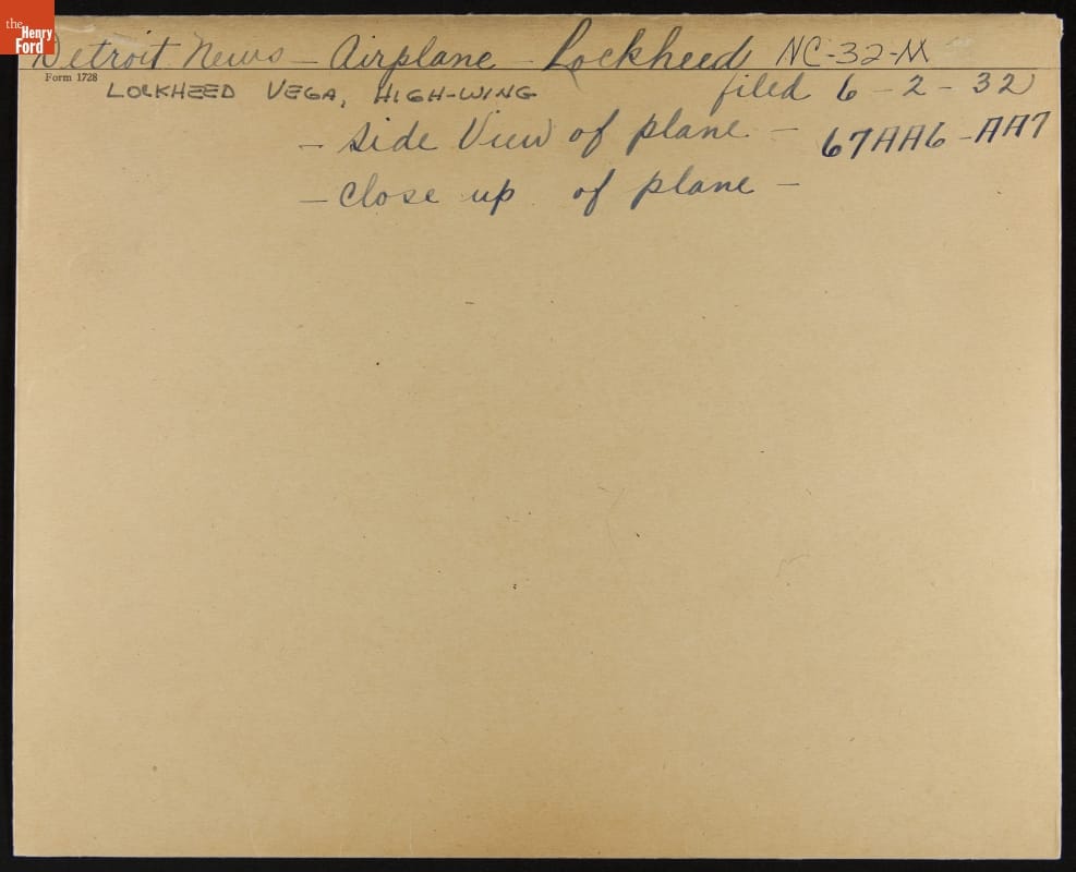 Detroit News--Airplane--Lockheed Vega--Side View of Plane--Item1