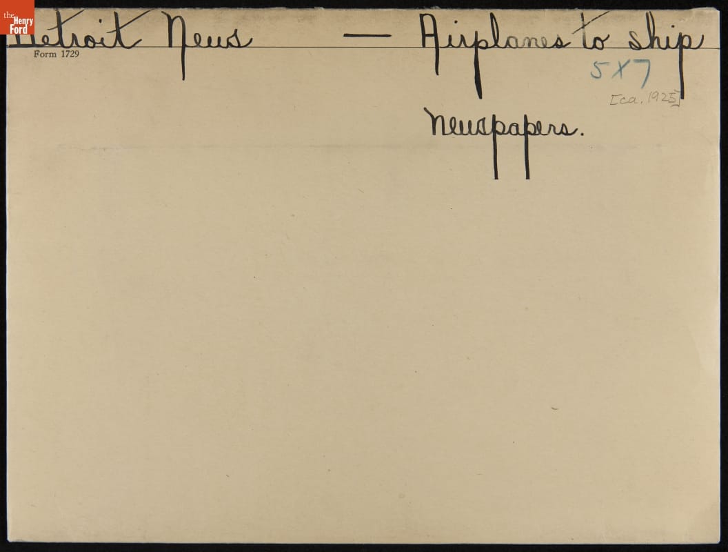 Detroit News--Aircraft--Airplanes to Ship--Newspapers--Item1