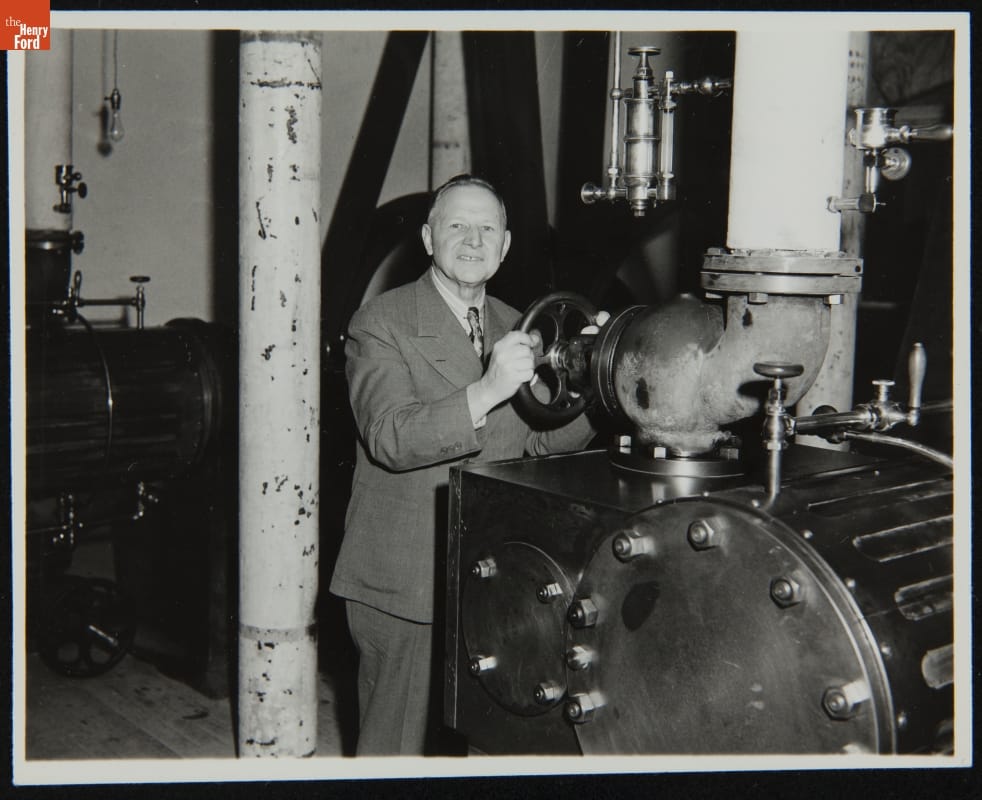 In 1944, Henry Ford built an edited, scaled-down version of the Detroit power plant where he had worked as chief engineer in the 1890s. Along with former Edison Illuminating Company coworkers, a few of Ford's current employees -- including William Dulmage, who had assisted with the station's construction -- attended the November dedication in Greenfield Village.