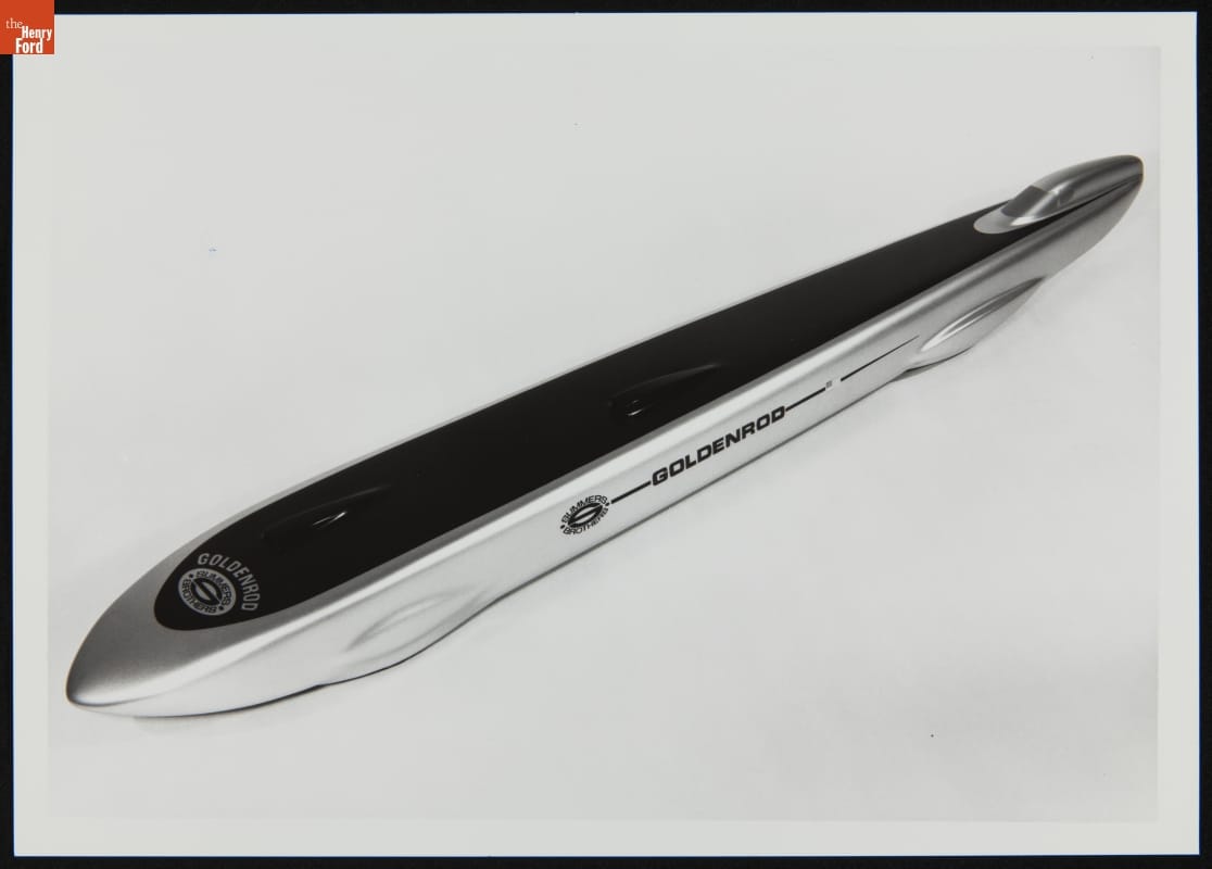Bob and Bill Summers set the pattern for wheel-driven land speed record cars -- in a jet-powered era -- with Goldenrod. The car's streamlined shape benefited from wind tunnel tests with a wood model at the California Institute of Technology. Goldenrod set a record of 409.277 miles per hour at the Bonneville Salt Flats in 1965. That record stood until 1991.