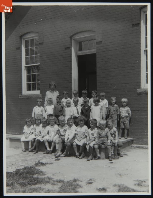 School Children and a Teacher in front of Scotch Settlement School at its Original Site, Dearborn Township, Michigan, 1926