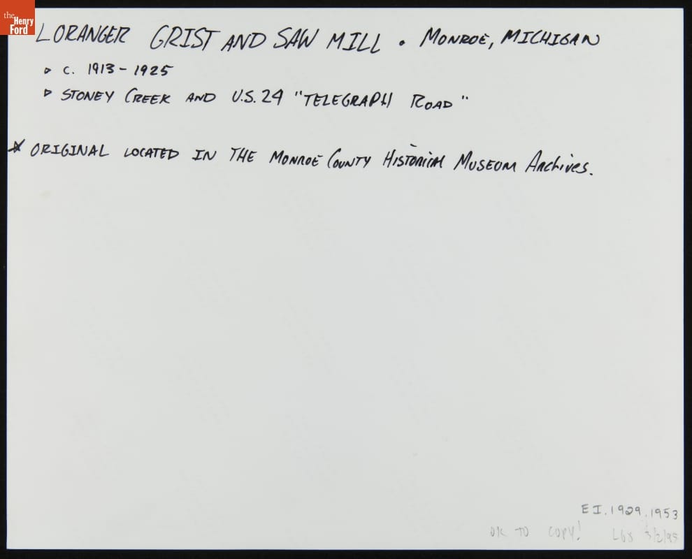Loranger Gristmill on Stoney Creek near Monroe, Michigan, 1913-1925