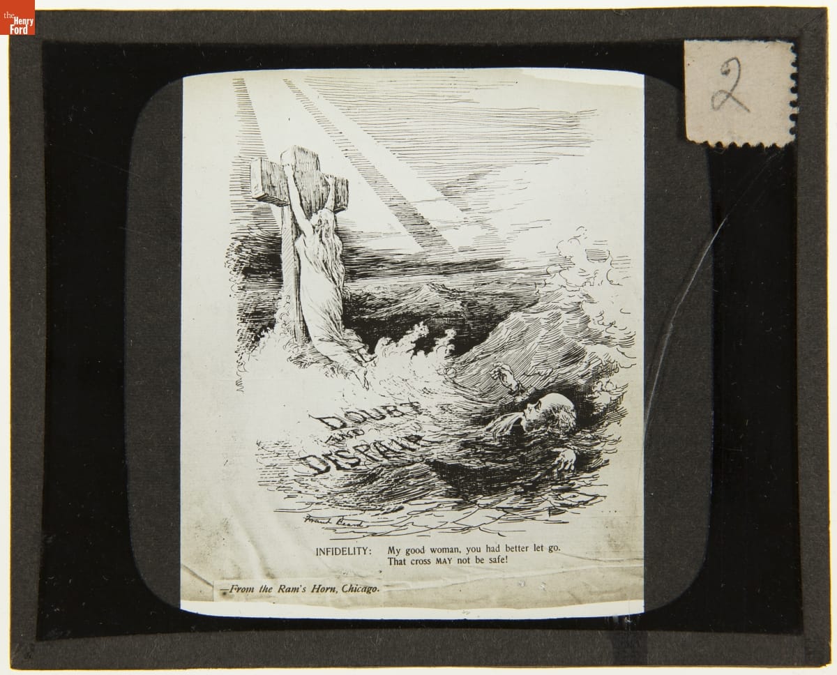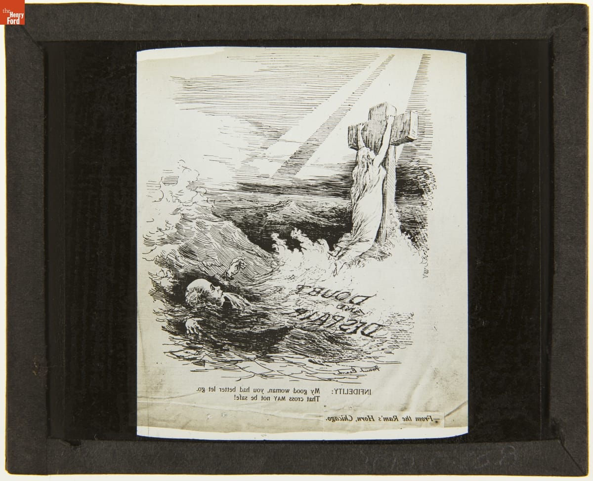 Lantern Slide, "Doubt and Despair" Cartoon from the Ram's Horn Magazine, 1890-1910