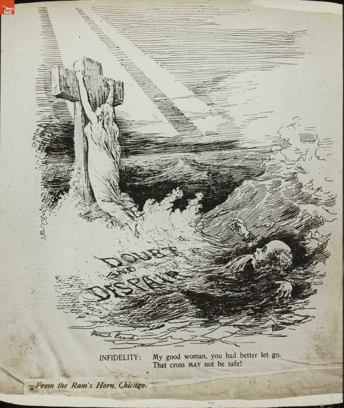 DOUBT AND DISPAIR / INFIDELITY: My good woman, you had better let go. That cross MAY not be safe! / From the Ram's Horn, Chicago.