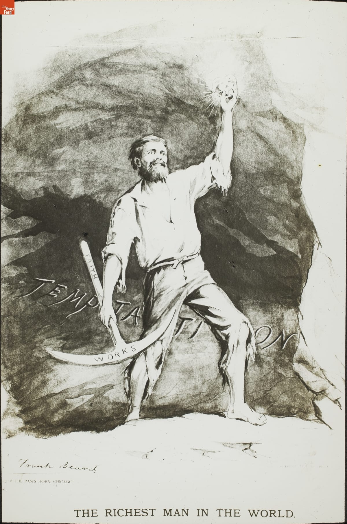 Frank Beard (1842-1905), an illustrator, caricaturist, and cartoonist, began his career by sketching scenes of military life for popular publications--such as Harper's Weekly--during the Civil War. His later works promoted Christianity, warned against secularism, and targeted the social ills of the Gilded Age. This slide shows one of his illustrations from The Ram's Horn, a non-denominational Christian periodical.