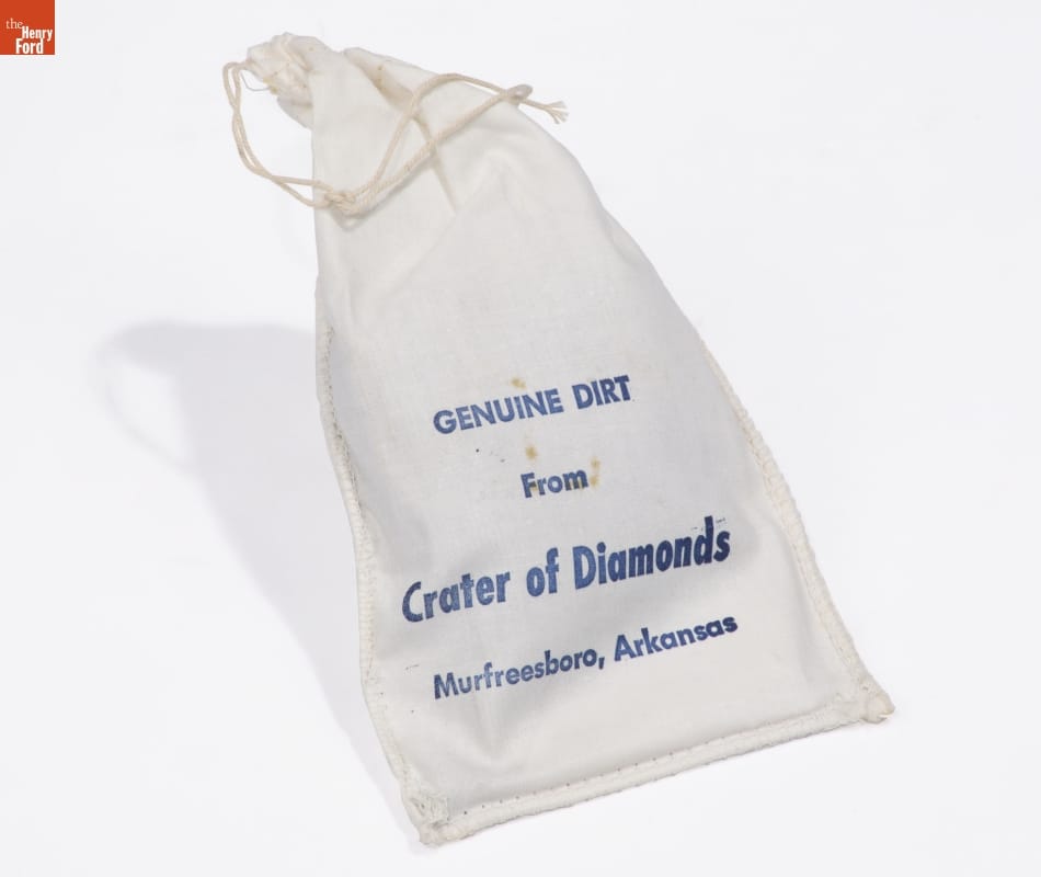 Souvenir Bag of Dirt, "Genuine Dirt from Crater of Diamonds," Murfreesboro, Arkansas, Obtained circa 1955