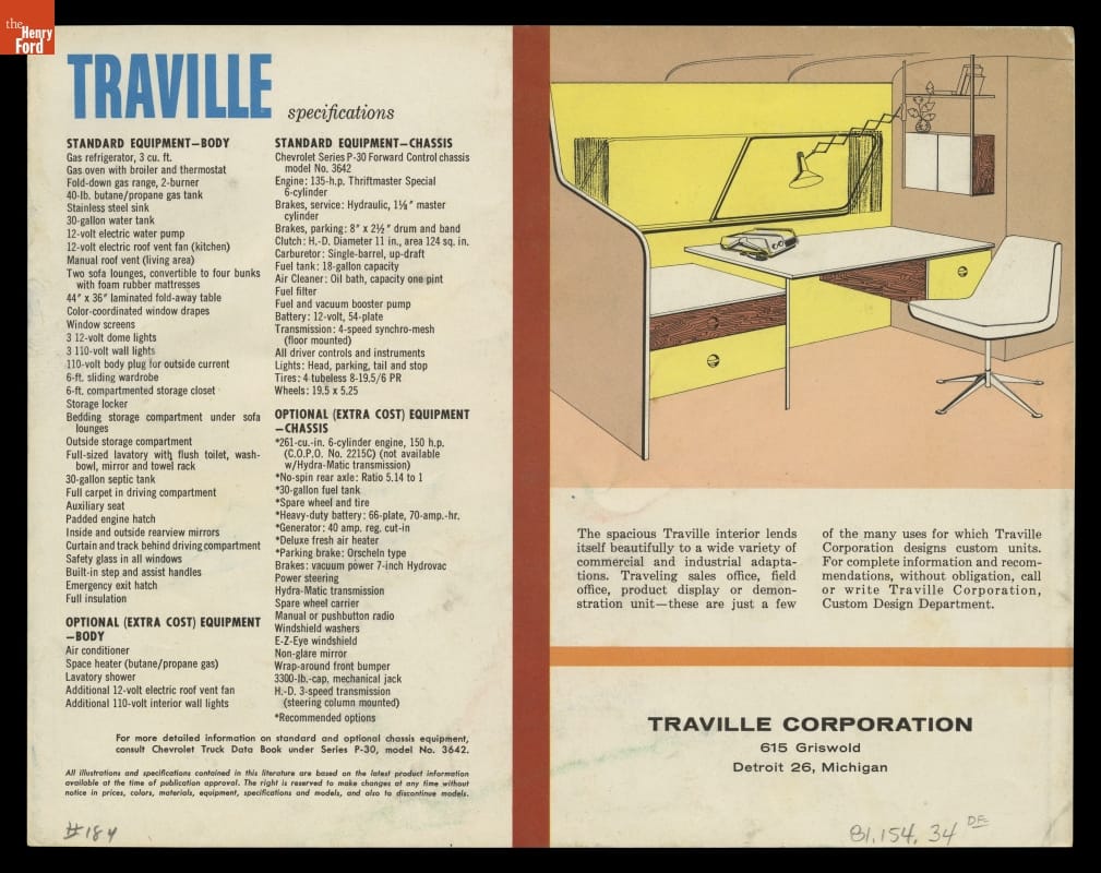 Sales Brochure for the Traville Camper, Traville Corporation, 1961