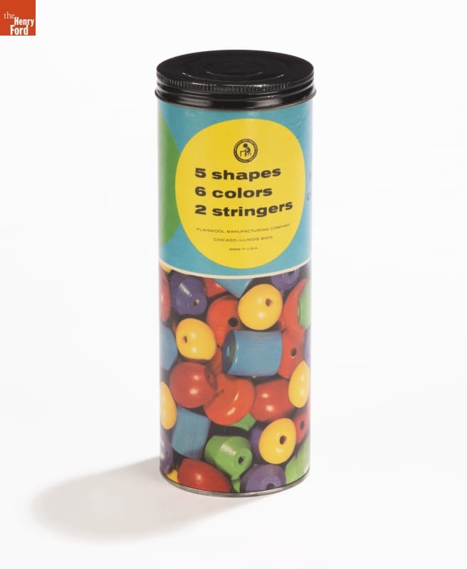 5 shapes/ 6 colors/ 2 stringers/ PLAYSKOOL MANUFACTURING COMPANY/ CHICAGO, ILLINOIS 60618/ made in U.S.A./ NON-TOXIC COLORS