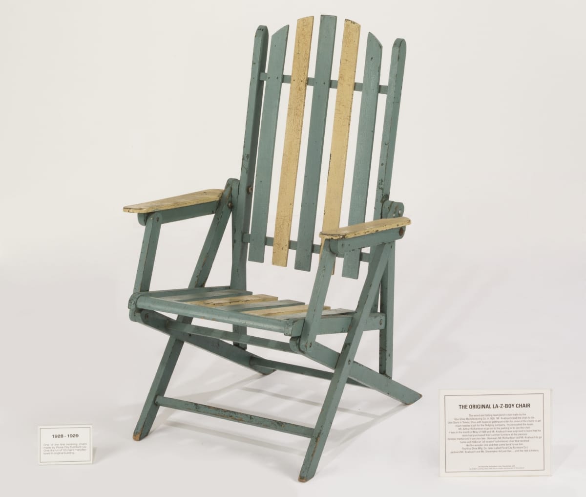 In 1927, Edward Knabusch and Edwin Shoemaker, established the Kna-Shoe Manufacturing Company (Floral City Furniture Company and later La-Z-Boy, Inc.) in Monroe, Michigan. Among their first products was a comfortable wood-slatted porch chair. They marketed the chair too late in the season but were encouraged to create an all-season upholstered chair. They did, and it became the origin of the now iconic La-Z-Boy recliner.