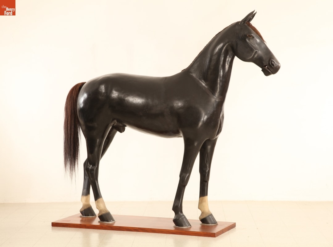 Horses were an important part of transportation until the car took over -- and buying the right equipment was essential to horse owners. Late 19th and early 20th century shops that sold saddles, harness, and tack used horse display mannequins, much like this one, to encourage horse owners to purchase the equipment from their stores.