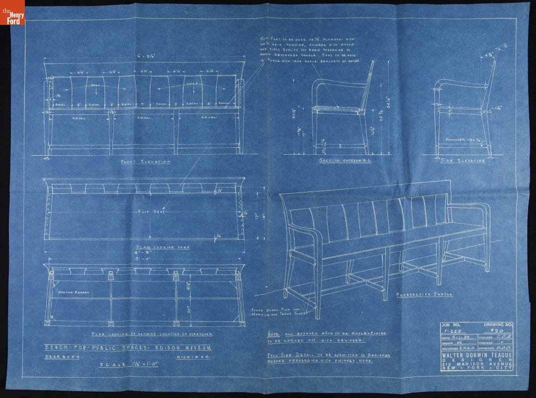 Walter Dorwin Teague Design for a Rest Bench for Use in Henry Ford Museum, September 1, 1939