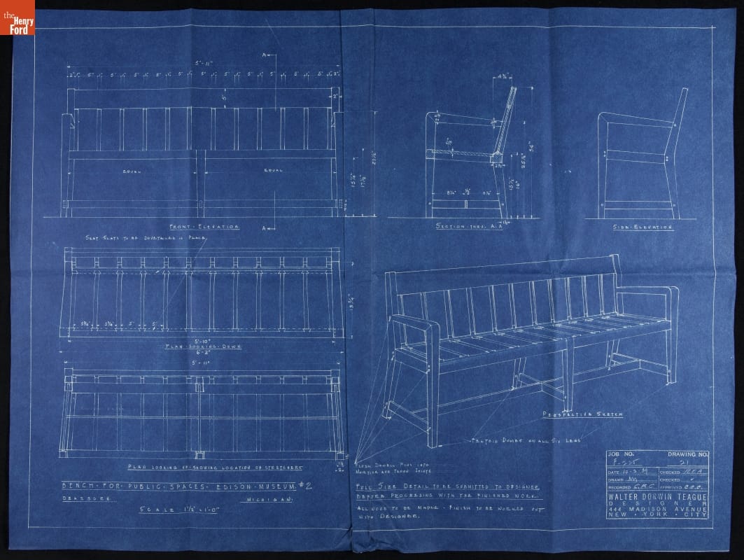 Walter Dorwin Teague Design for a Rest Bench for Use in Henry Ford Museum, October 2, 1939