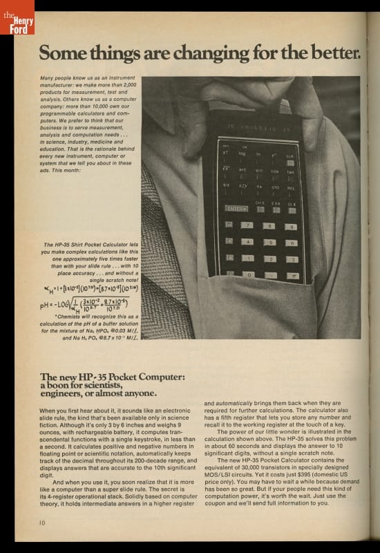 Some things are changing for the better. / The new HP-35 Pocket Computer: a boon for scientists, engineers, or almost anyone.
