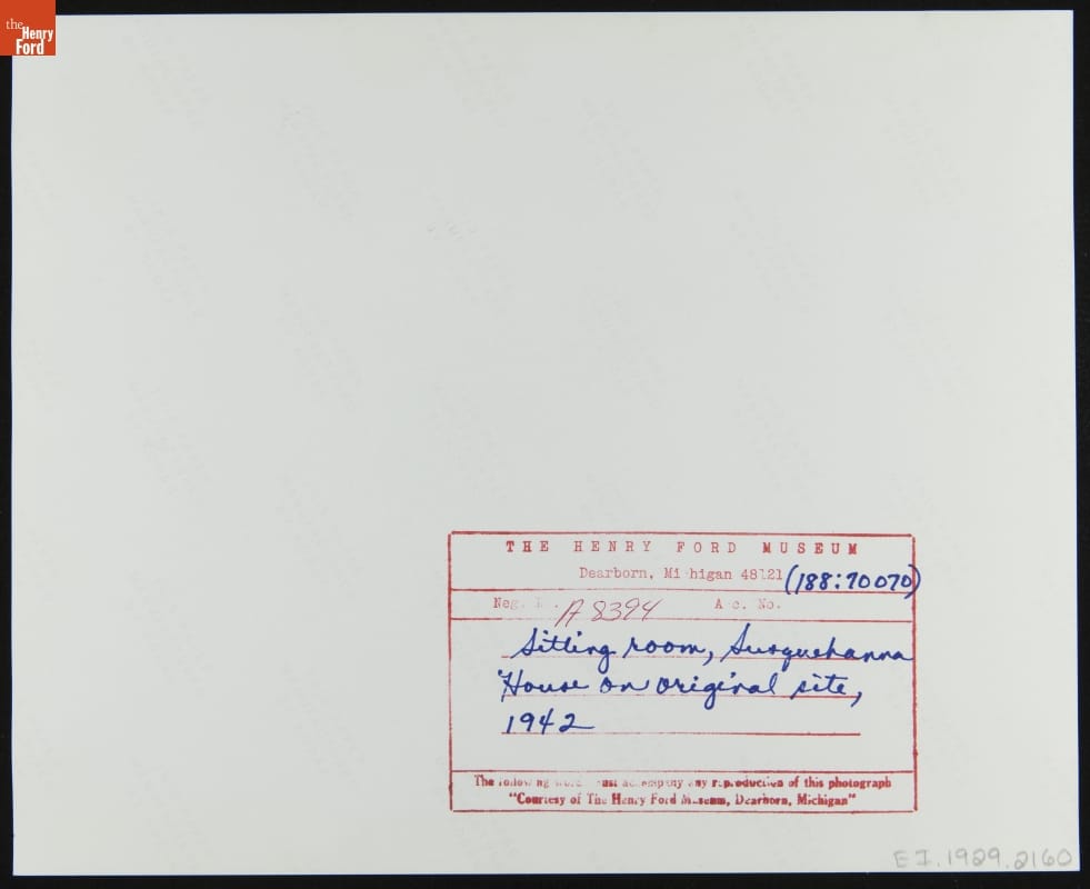 Sitting Room of the Susquehanna House at its Original Site, St. Mary's County, Maryland, February 27, 1942