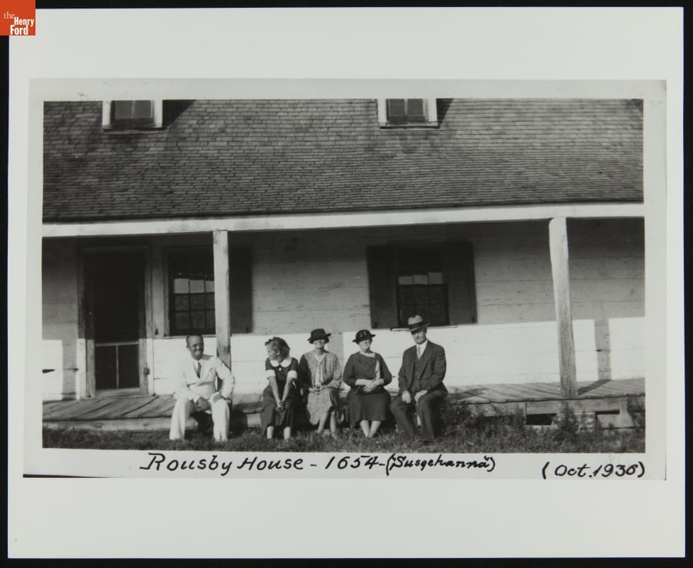 Willson Knight, Suzanne Knight Gardiner, Dorothy Knight, Ann Knight, and Harvey Knight outside Susquehanna House, October 1936