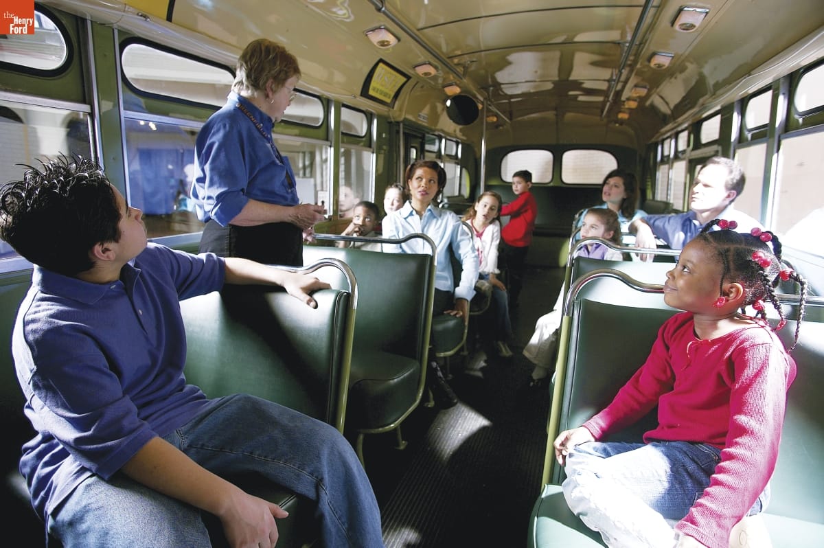 Historical Presenter with Guests inside the Rosa Parks Bus in Henry Ford Museum, 2006