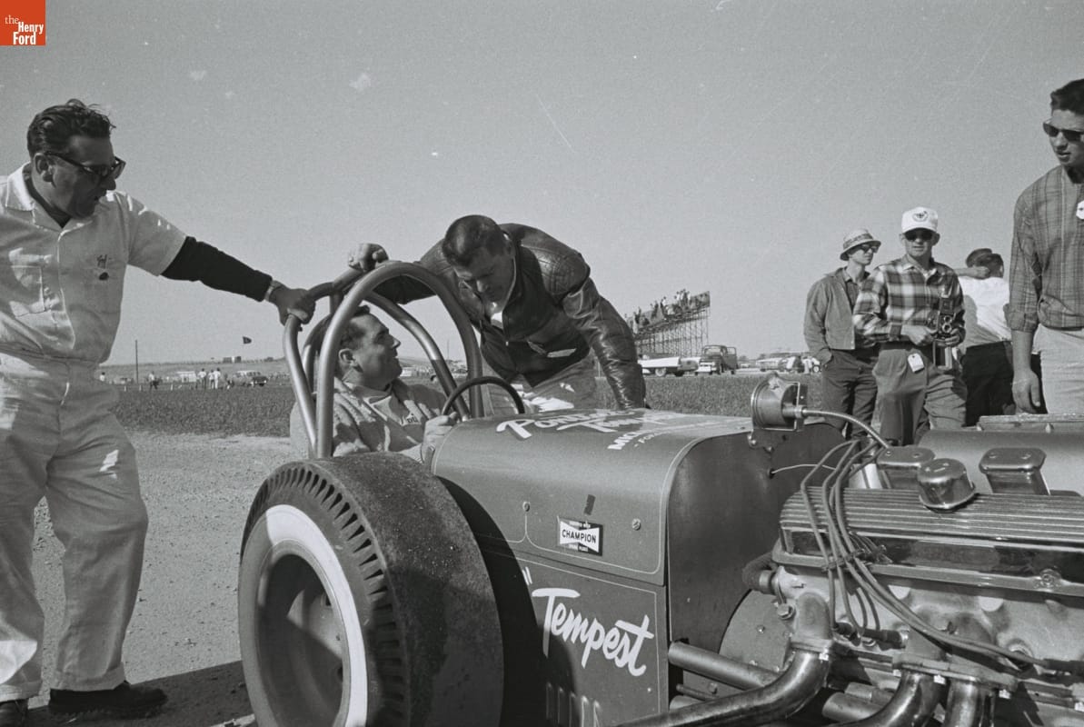 Photographer Dave Friedman captured and preserved auto racing history. His work -- and his collection of works by other photographers -- documents key races, cars, drivers, and teams. This photo is from the grand opening of Indianapolis Raceway Park, held May 27-29, 1961, before the Indianapolis 500. The "Pre-500 Speed-O-Rama" featured an appearance by Mickey Thompson and his four-cylinder, supercharged Pontiac Tempest dragster.