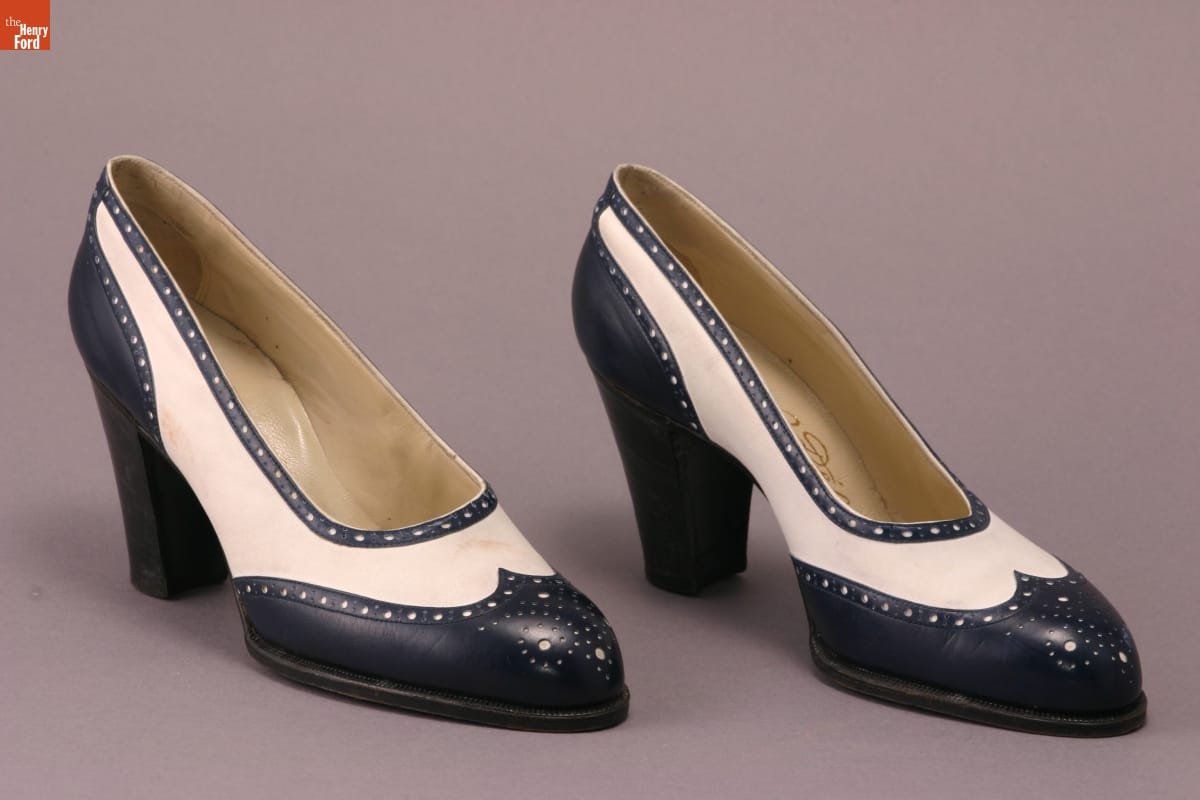 Elizabeth Parke Firestone's refined sense of fashion reflected years of interest in clothing design and collaboration with world-renowned couturiers. Firestone dressed impeccably from head to toe, accessorizing her designer ensembles with carefully selected hats, gloves, handbags, and footwear. She would have worn these low heeled, sturdy pumps during the summer for more casual day wear or travel.